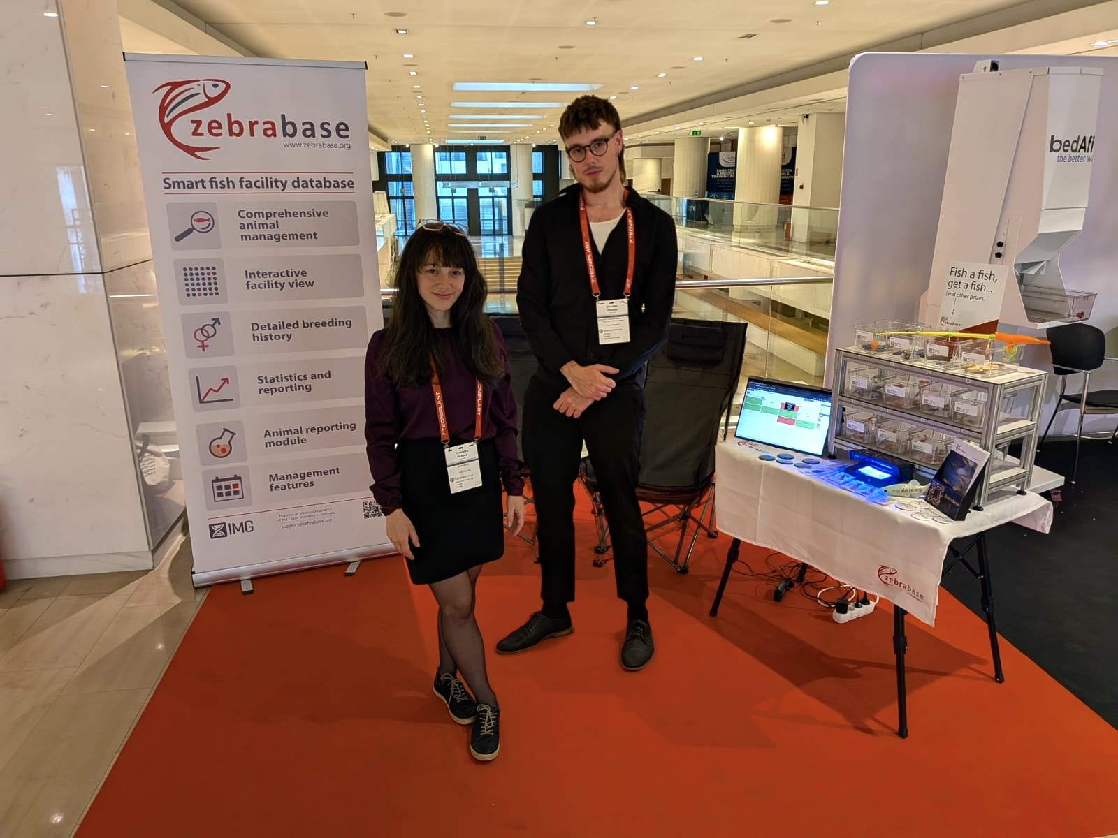 A crowd of people visited our booth during the meeting. Everybody who was interested in Zebrabase and who filled out the survey received the 3D-printed fish of various genotypes representing different mutant and GFP reporter zebrafish lines, that could be recognized using UV light right at the booth. Using their mobile phones and QR codes they could be navigated directly to the particular fish substock to learn more about the genotype and the breeding history. It was a big success since more than 40 potential users representing smaller labs but also larger facilities expressed interest in testing the demo version of the Zebrabase. If you want to become one of them, please go to https://zebrabase.org/contact and send us your request.